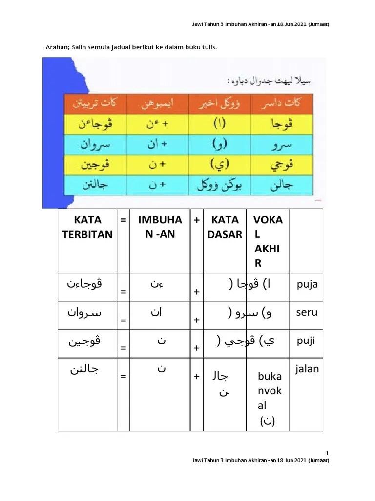 Latihan Jawi Tahun 3 Imbuhan Akhiran : Tahun 3 Imbuhan Akhiran Sumber Pengajaran. Latihan jawi tahun 3 imbuhan awalan, akhiran dan apitan rujuk buku teks ms 46 hingga 61 kredit: Sila eja perkataan laluan dalam tulisan jawi. Play this game to review education. Esl video lesson with an interactive quiz: This site's about teaching english. Bbm nafsiah follow telegram motivasi ibubapa/guru:. Add to my workbooks (18) download file pdf